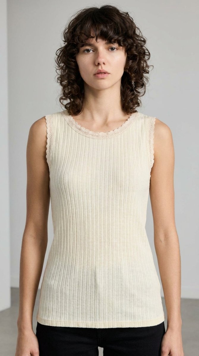 Women's Ribbed Tank Top – Round Neck with Lace Trim