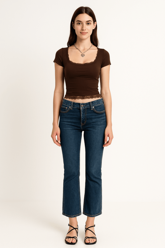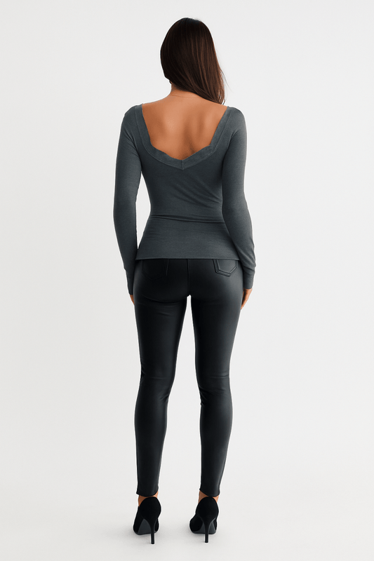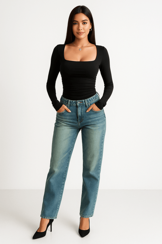 Top Black Polyester‑Elastane Slim Square‑Neck Top