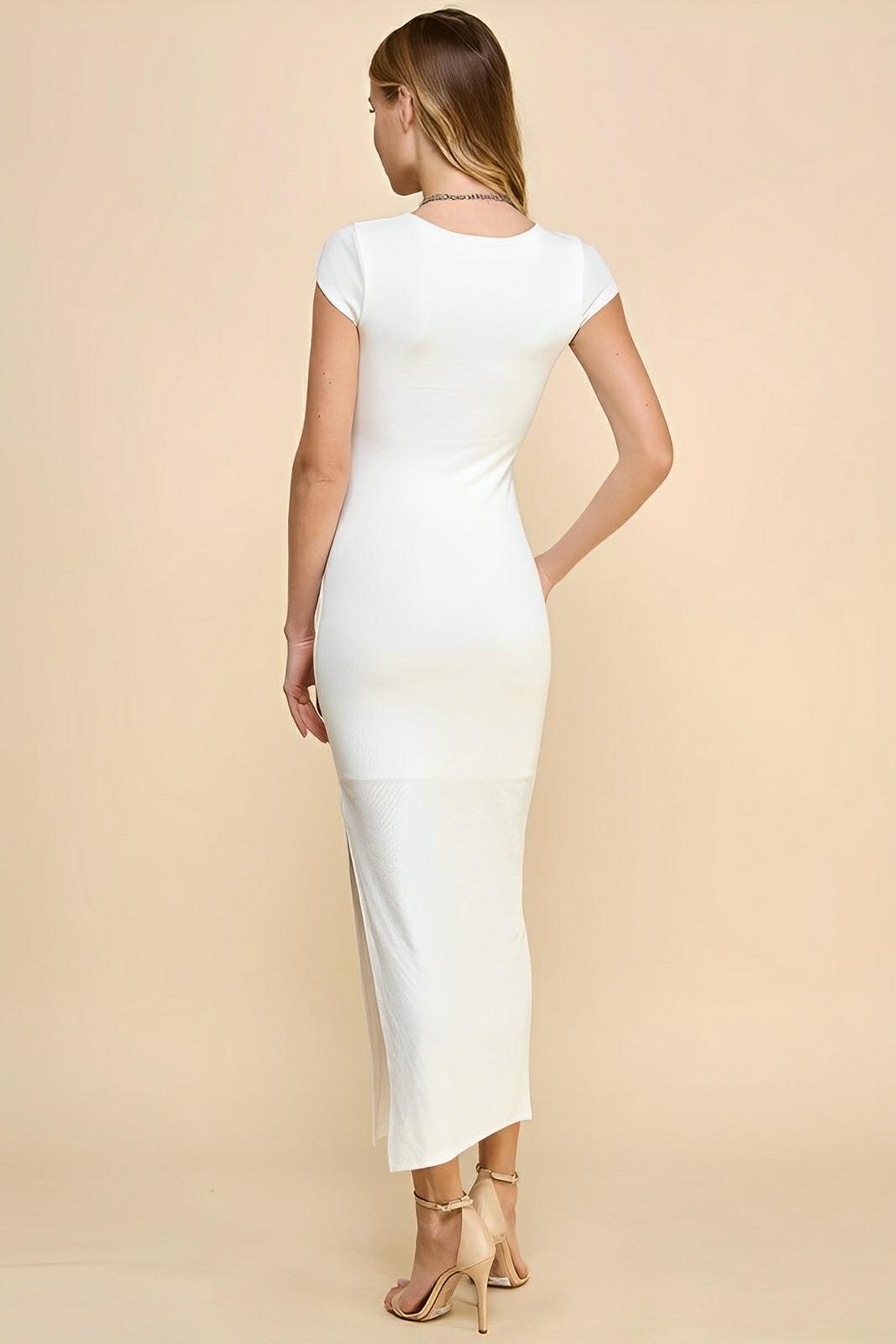Crew Neck Cap Sleeve Rib Maxi Dress