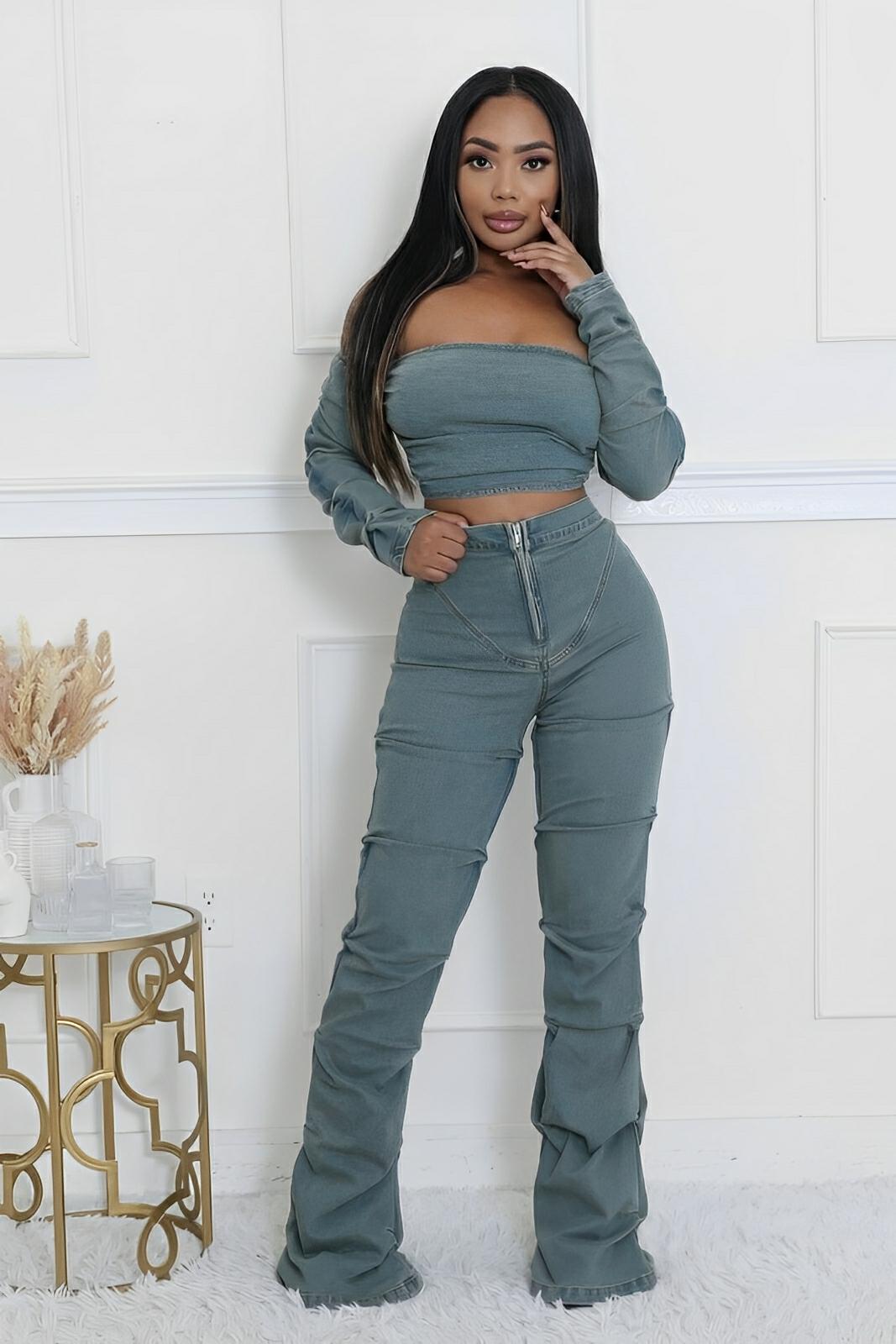Add the Off Shoulder Knit Top & Wide-Leg Pant Set to your wardrobe today and enjoy a comfortable, fashion-forward look perfect for casual days and beyond.