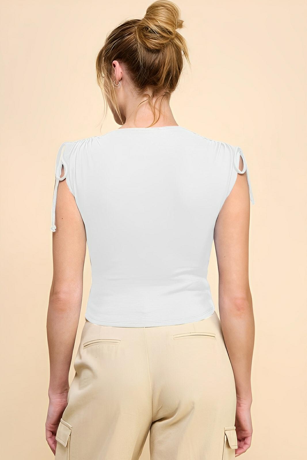 Add the Ruching Shoulder Ribbed Knit Top to your wardrobe today and enjoy the perfect balance of comfort, structure, and modern flair.